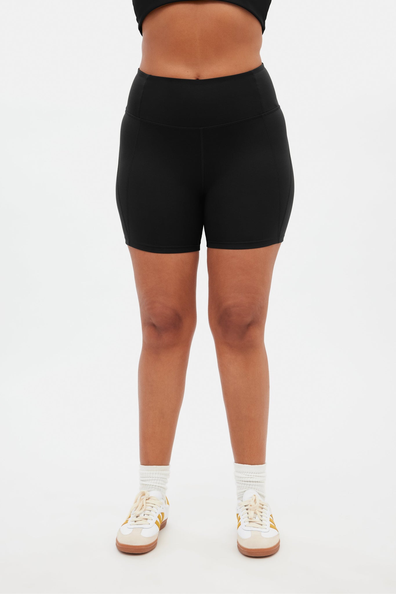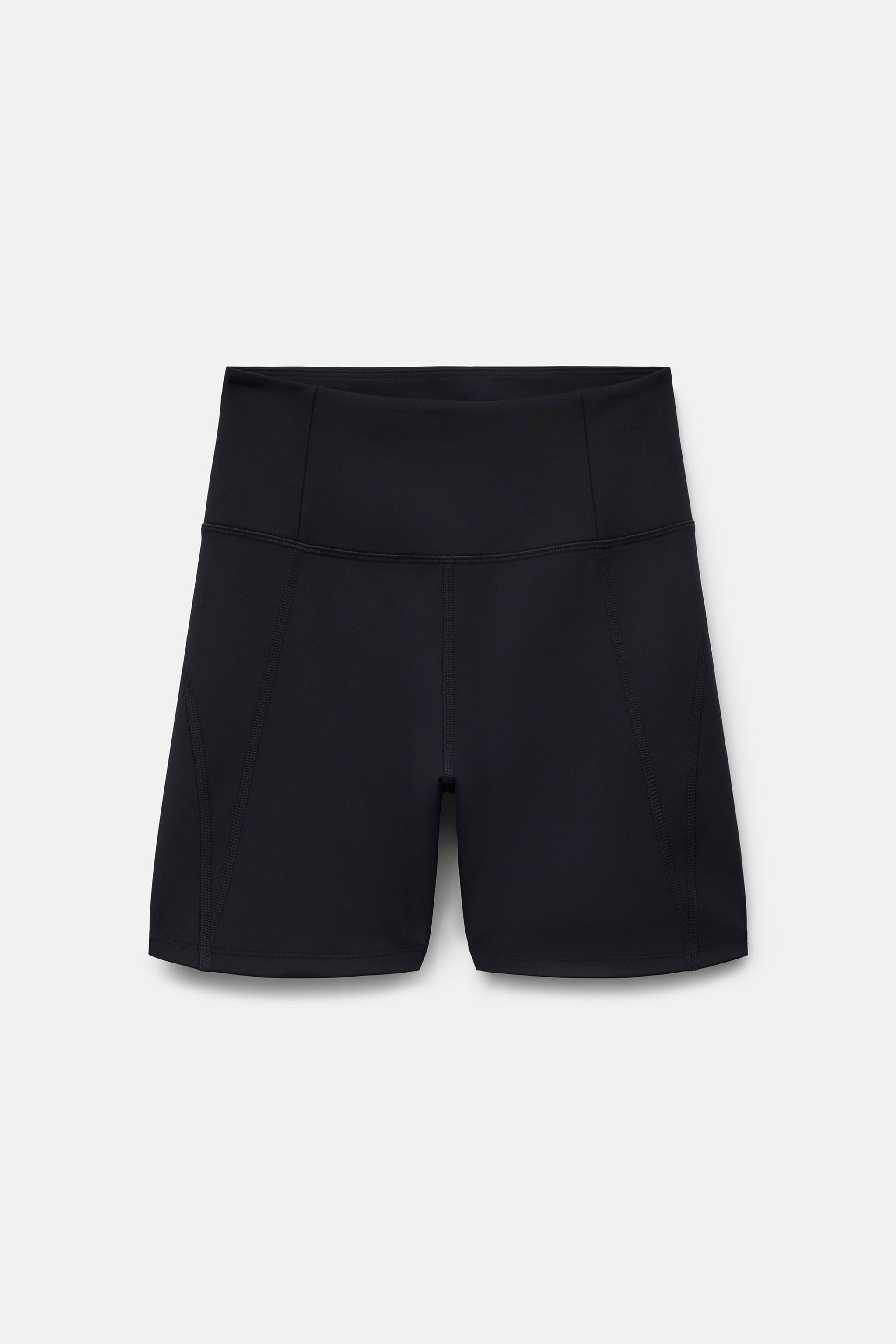 Sweat-wicking, sheer-proof compressive shorts with an ultra-high rise and a 4.75” inseam.