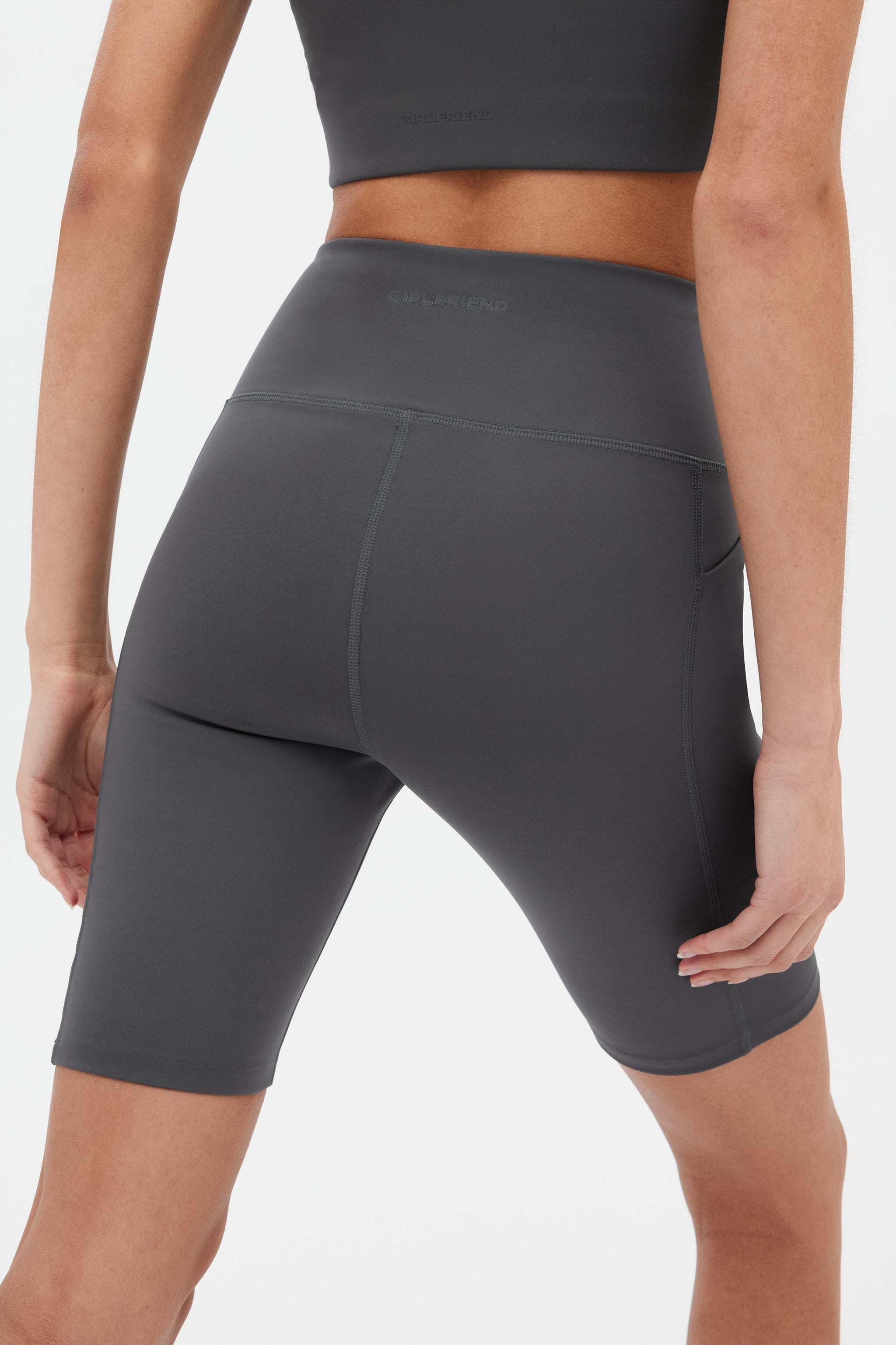 Compressive bike shorts that have a high rise, 8.5” inseam, and you guessed it — pockets.