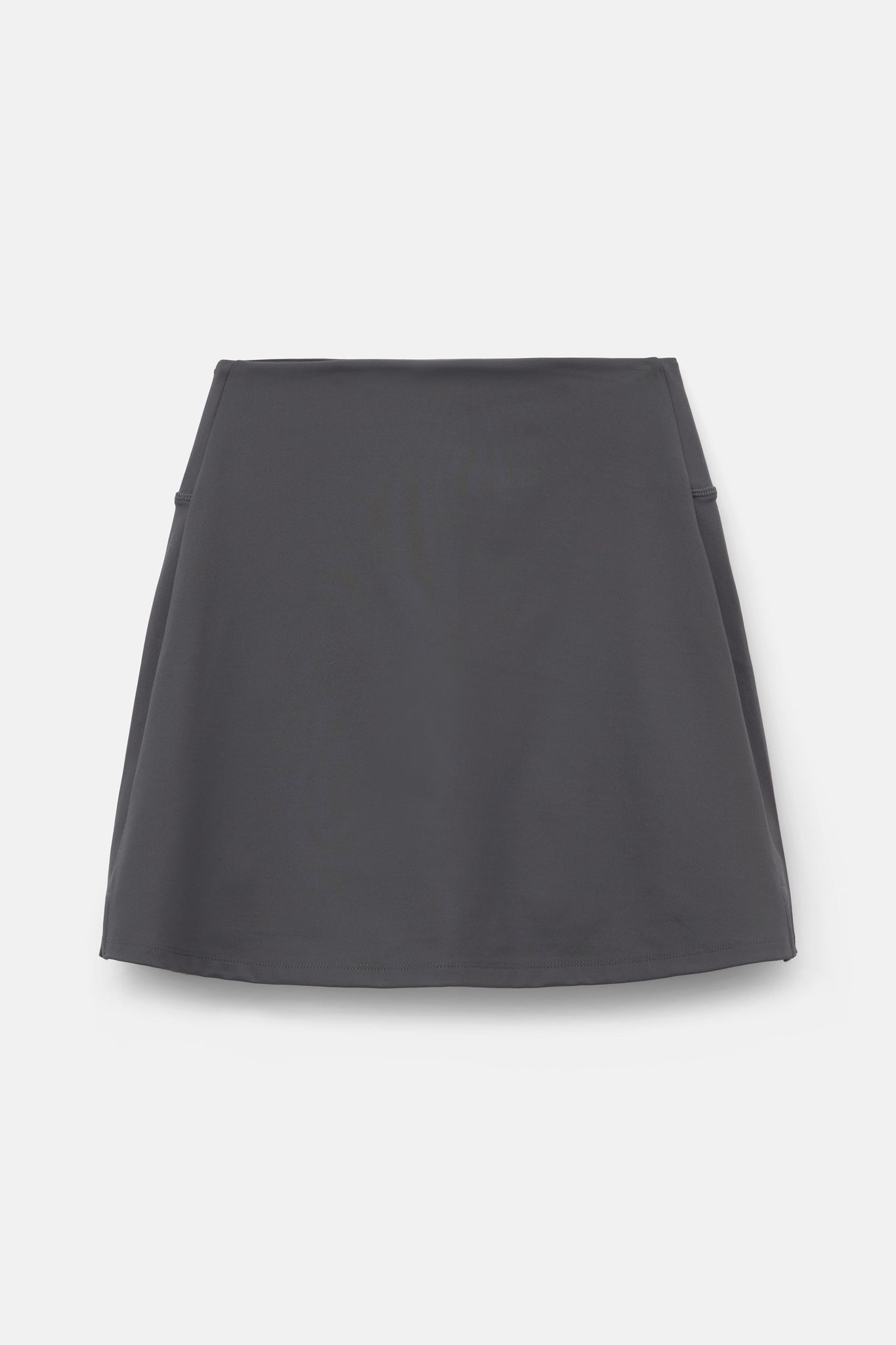 A sporty high rise exercise skirt with built-in compressive shorts, hidden mesh pockets, and side slits for easy moving.