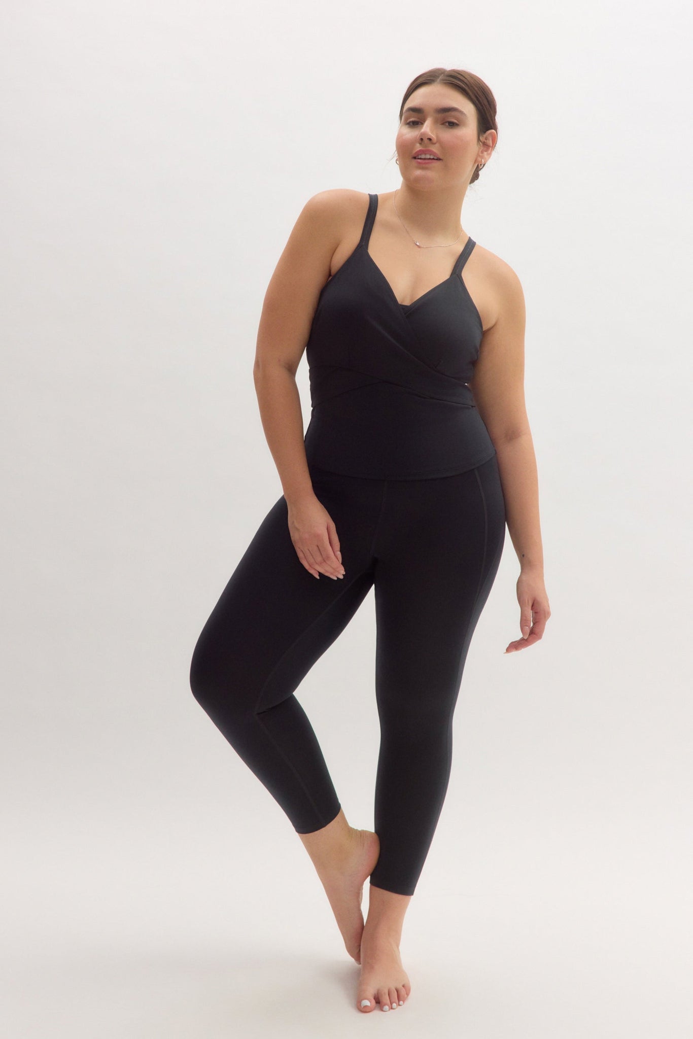 A Go-To To Go Anywhere. A full-length faux wrap tank, made in our compressive fabric for constant gentle-hug support. Works anywhere from a morning workout to a night out after work.