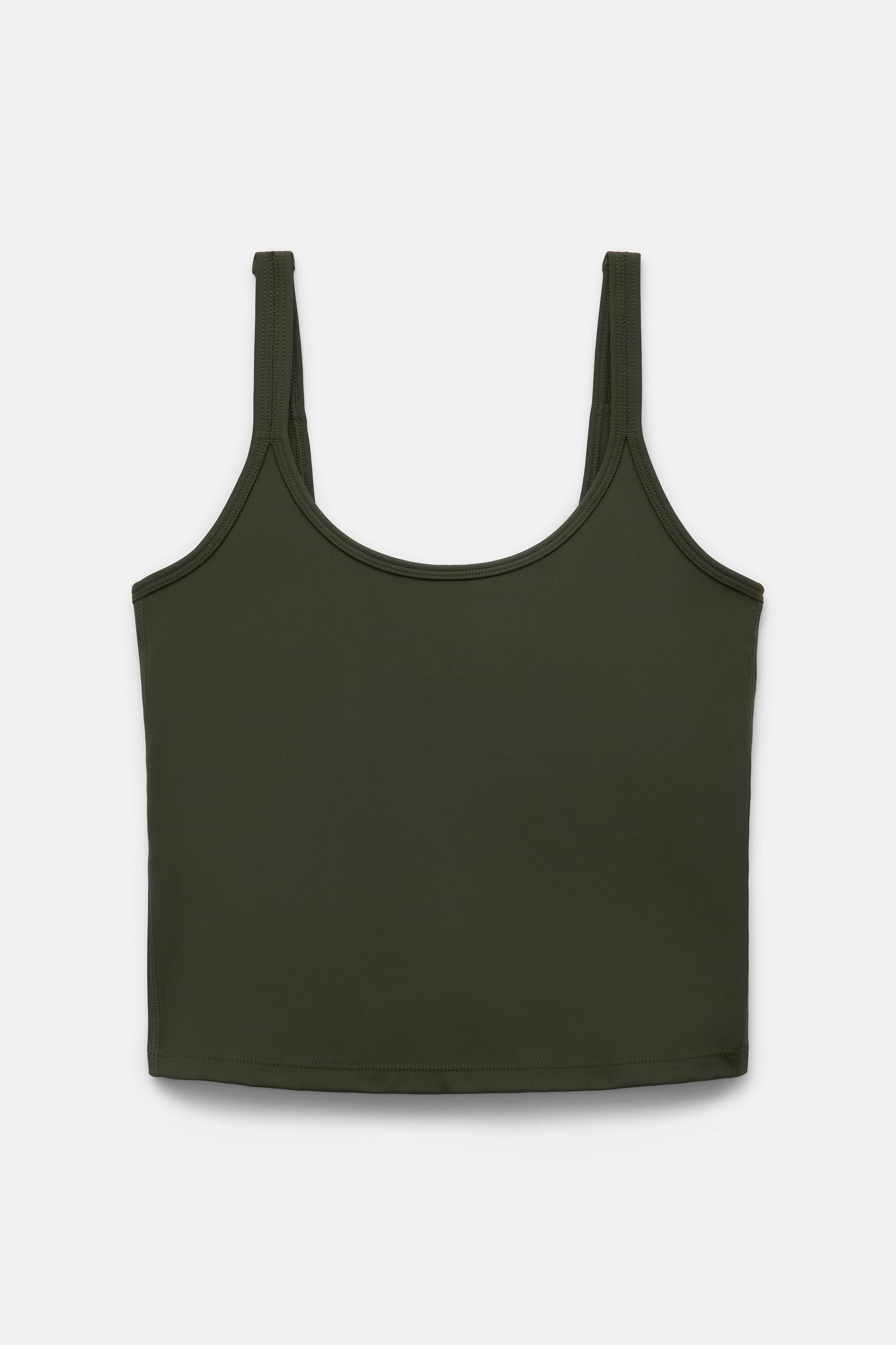 A staple Compressive full length tank designed with an open scoop neck and a built-in bra to keep you comfortable and supported.