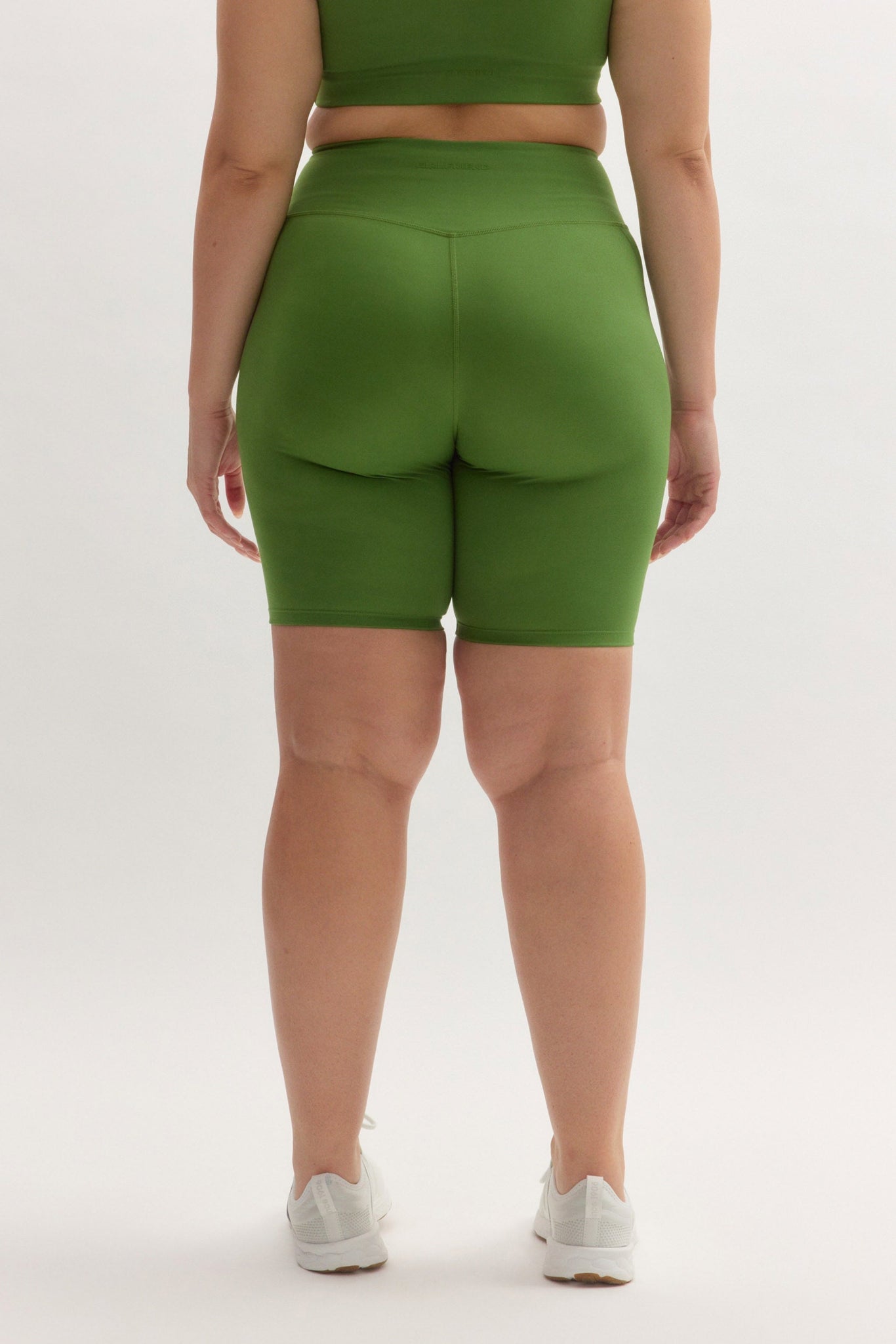 Compressive, high-rise bike shorts with an 8.5” inseam. Ride up-resistant, down for whatever.