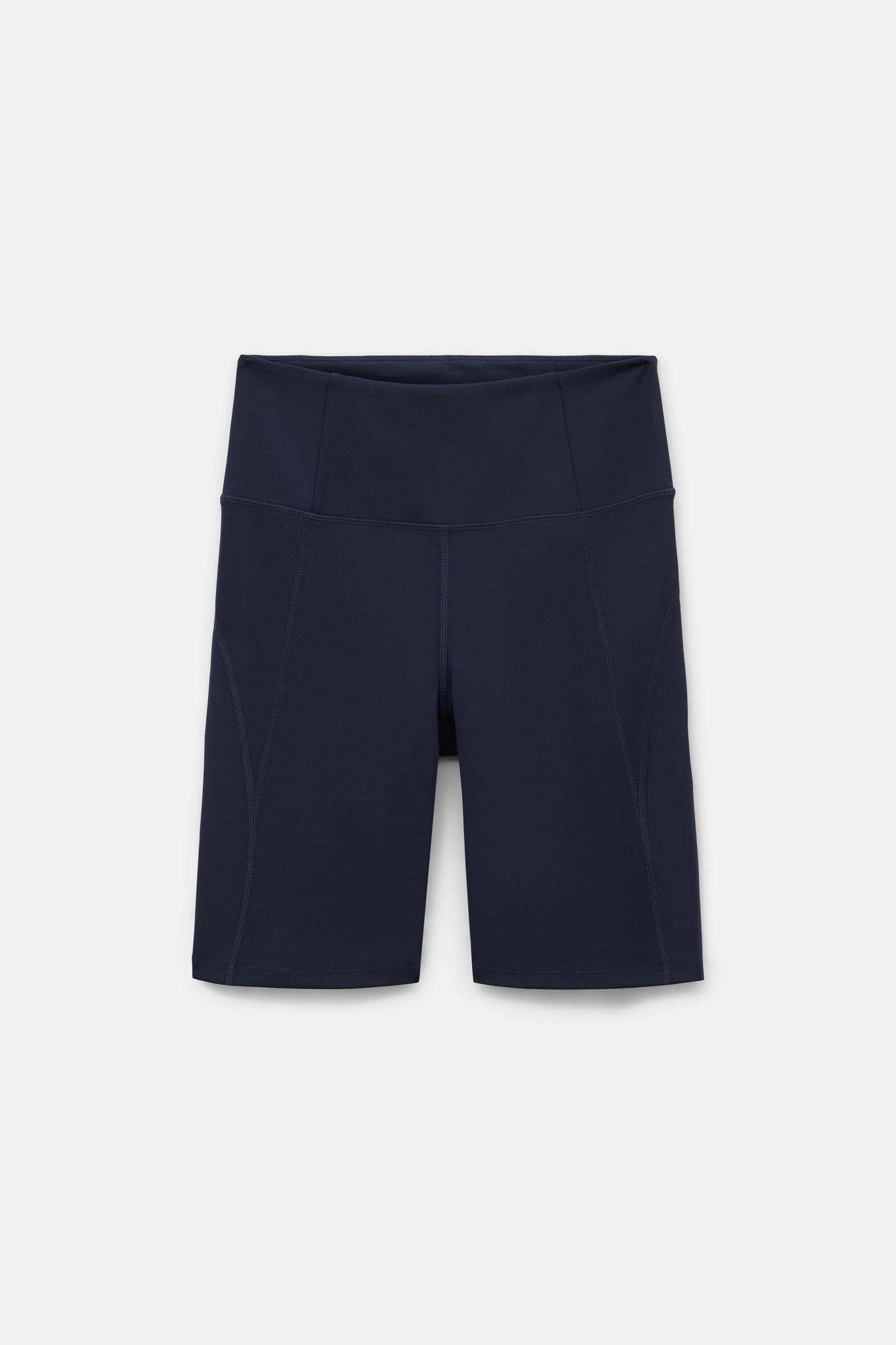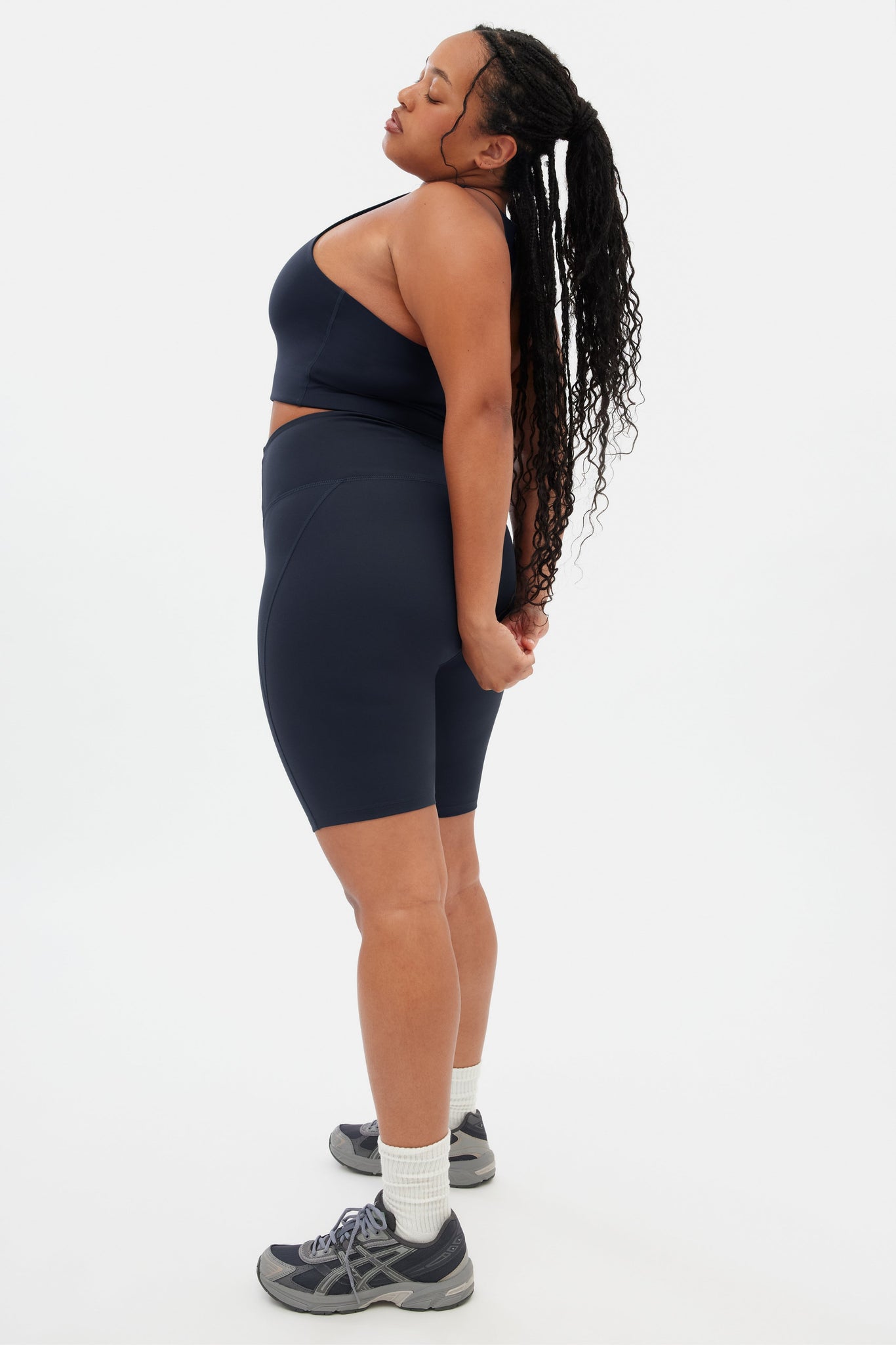 Compressive, high-rise bike shorts with an 8.5” inseam. Ride up-resistant, down for whatever.