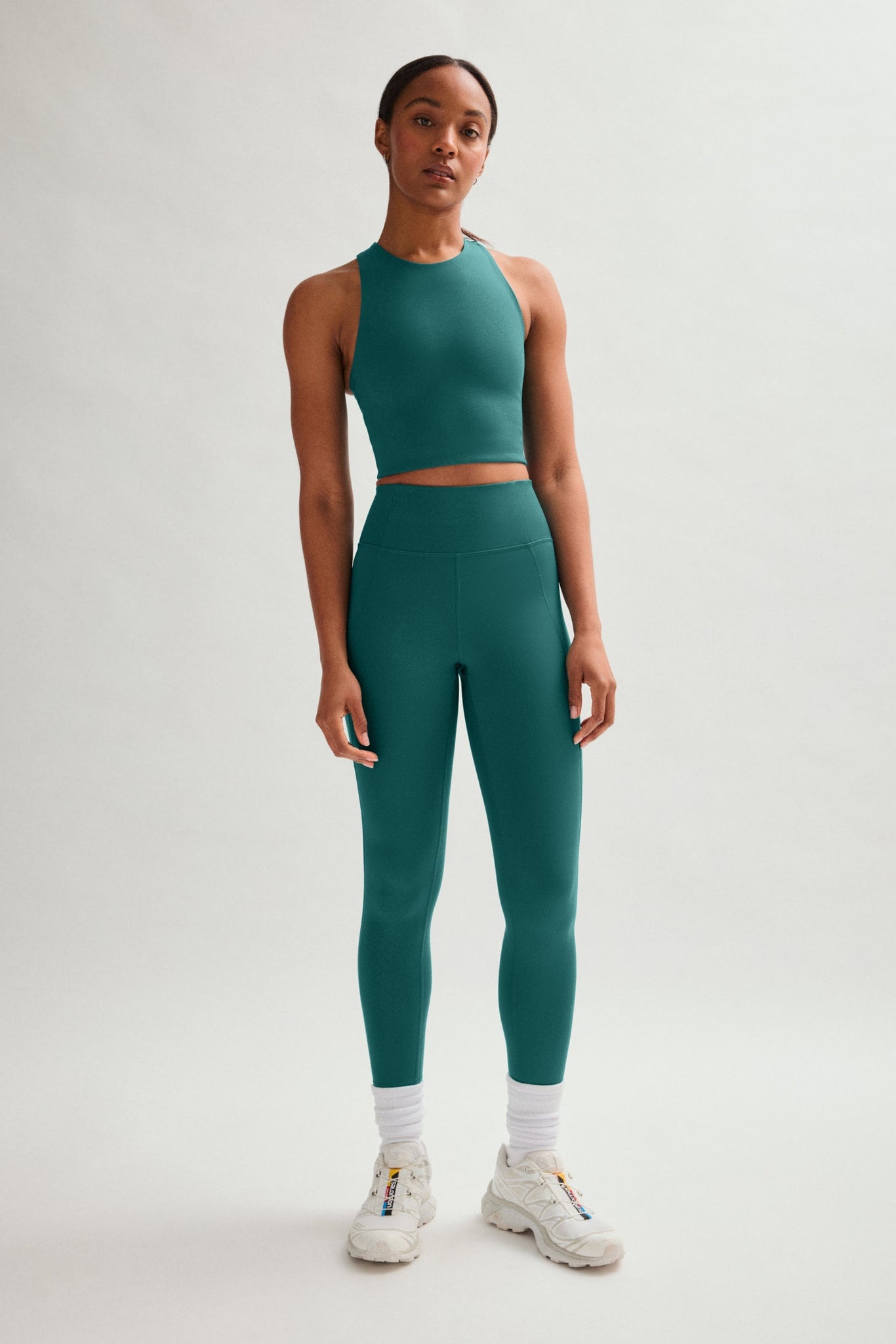 Our #1 seller. Compressive, squat-proof, ultra-high rise sustainable leggings made from 25 recycled water bottles.