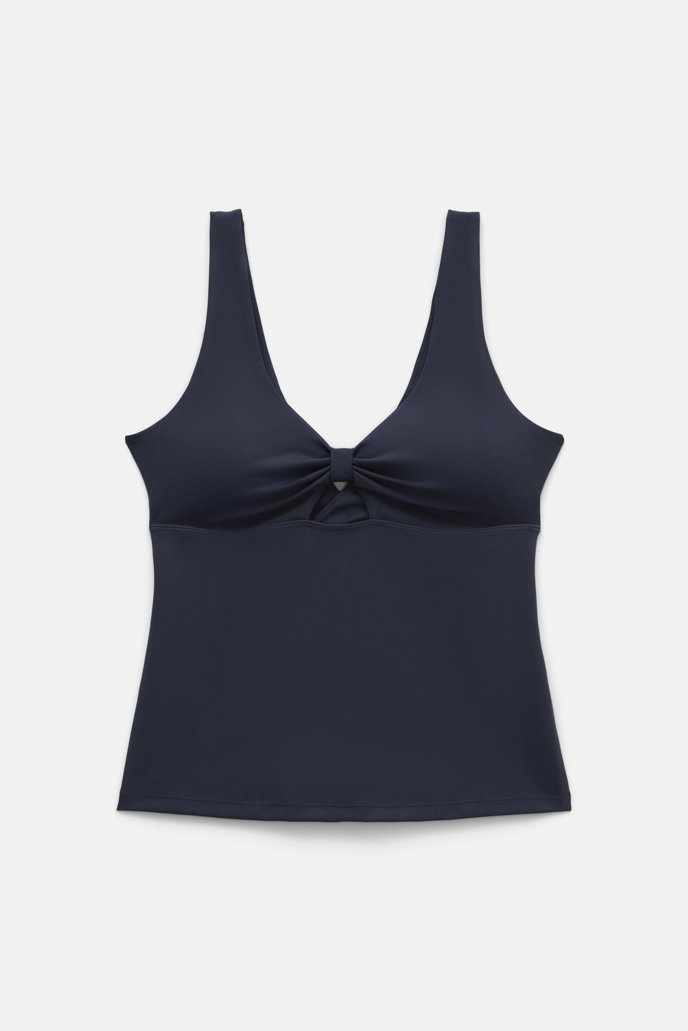 A full length workout tank with a bow cutout and low back.