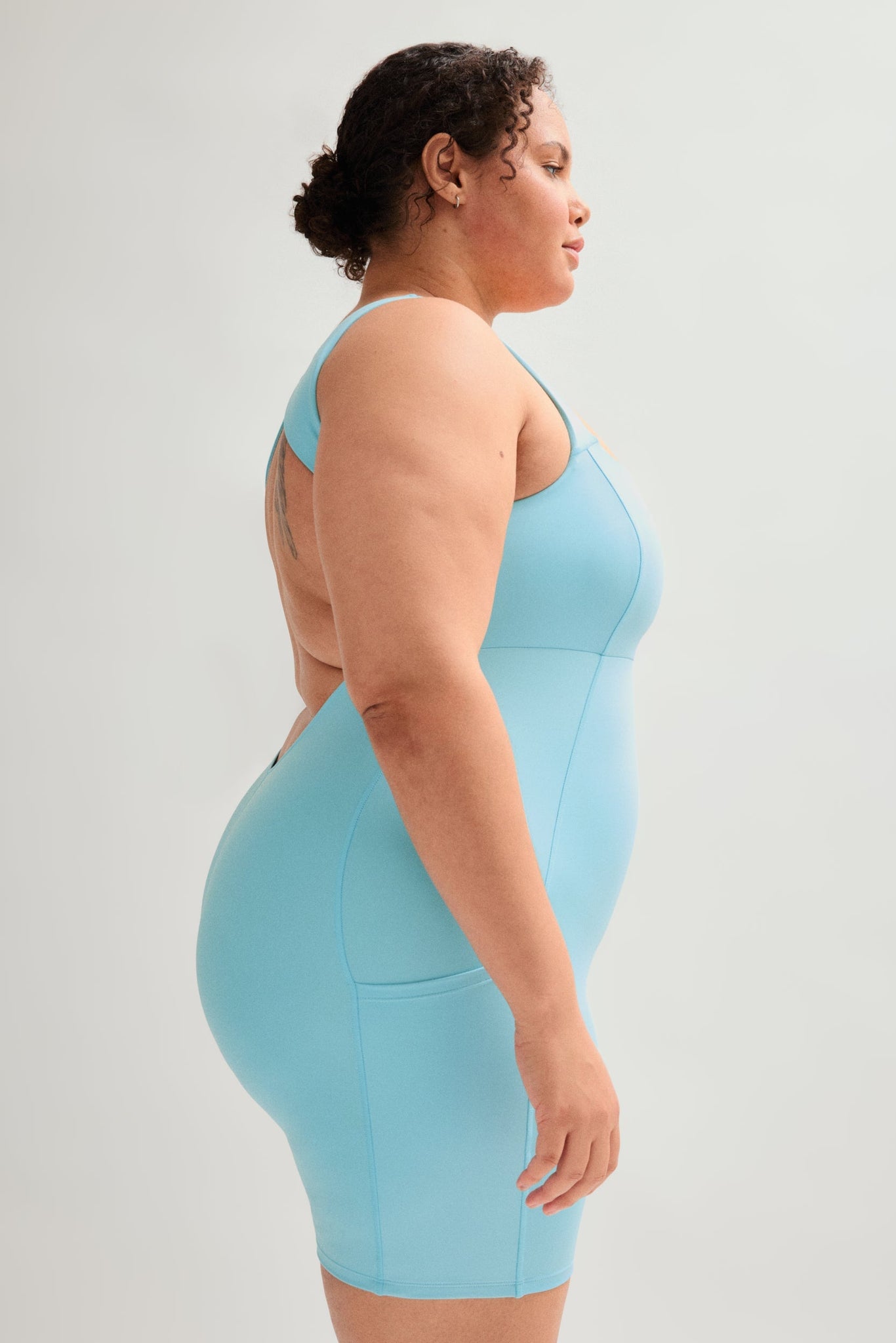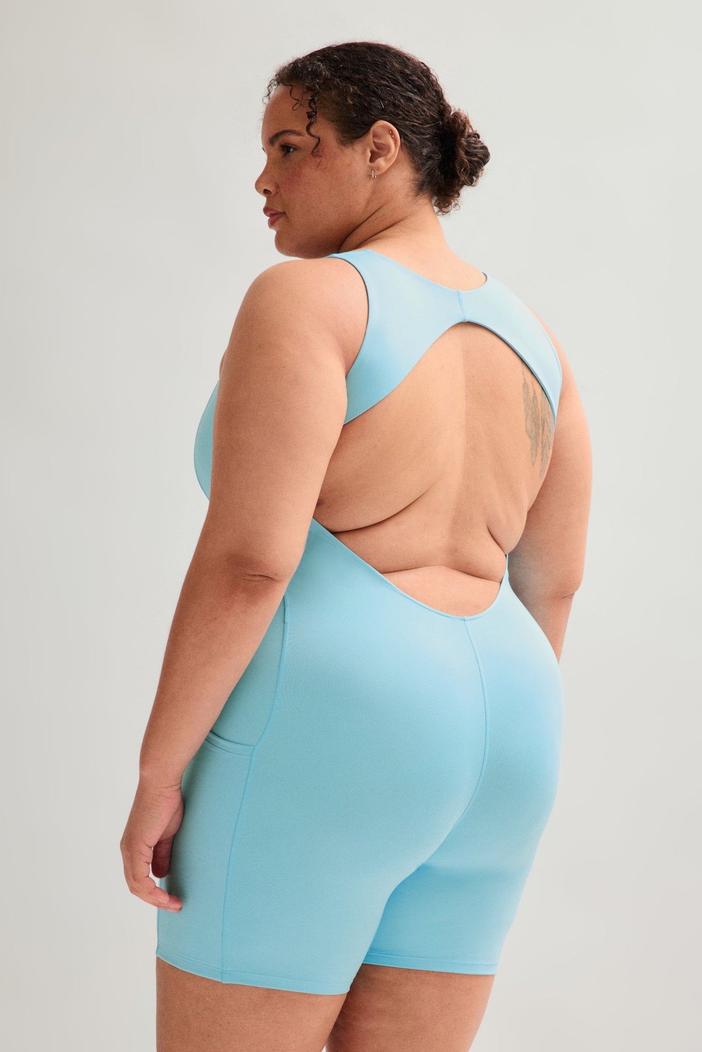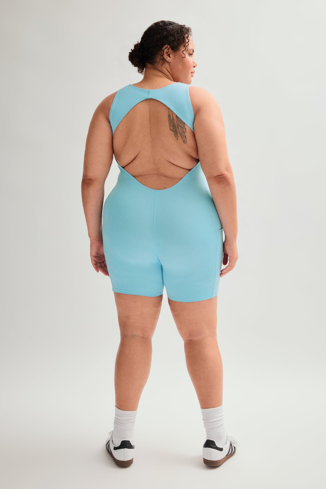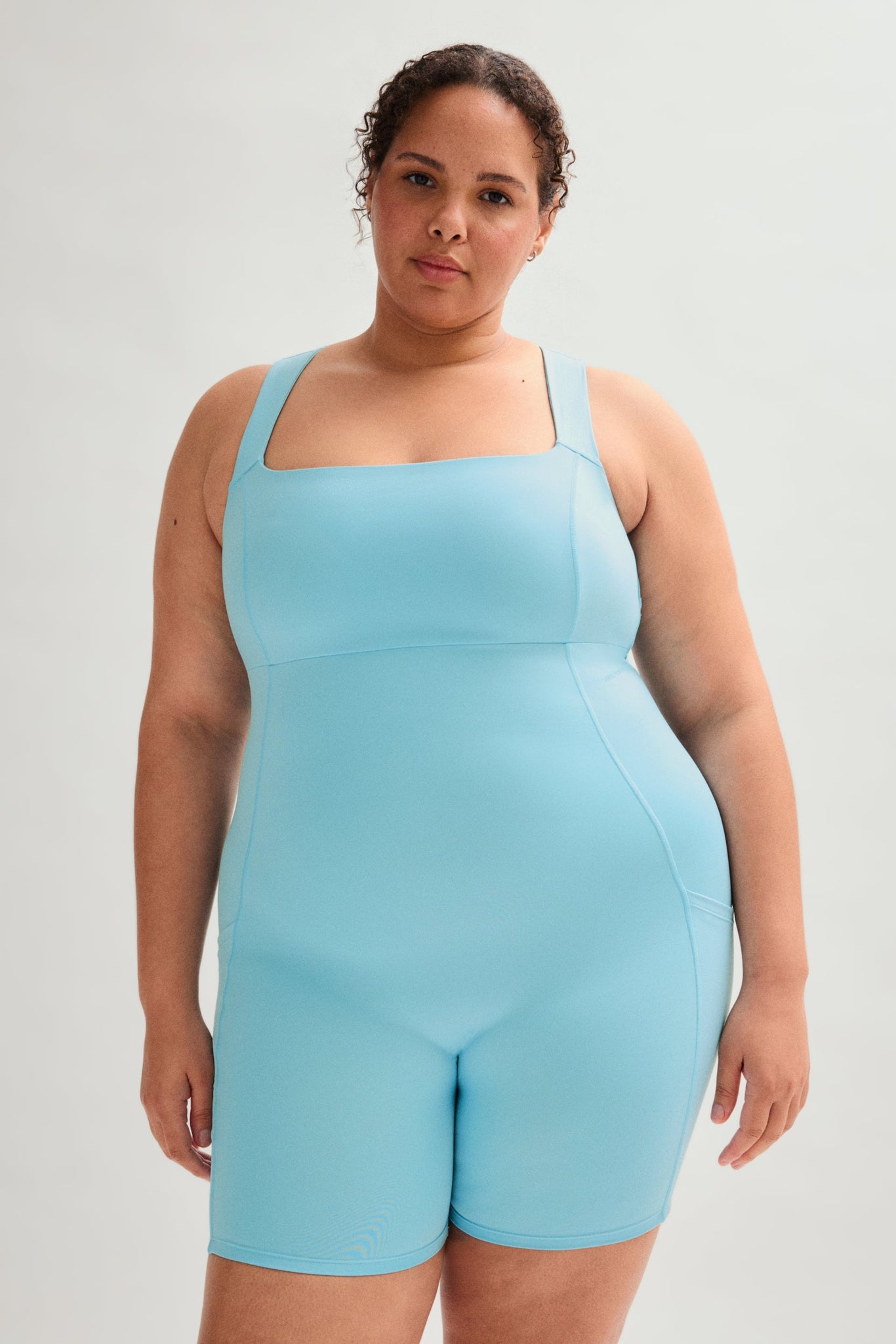 An ultra-flattering active unitard with a square neckline and 6” inseam.