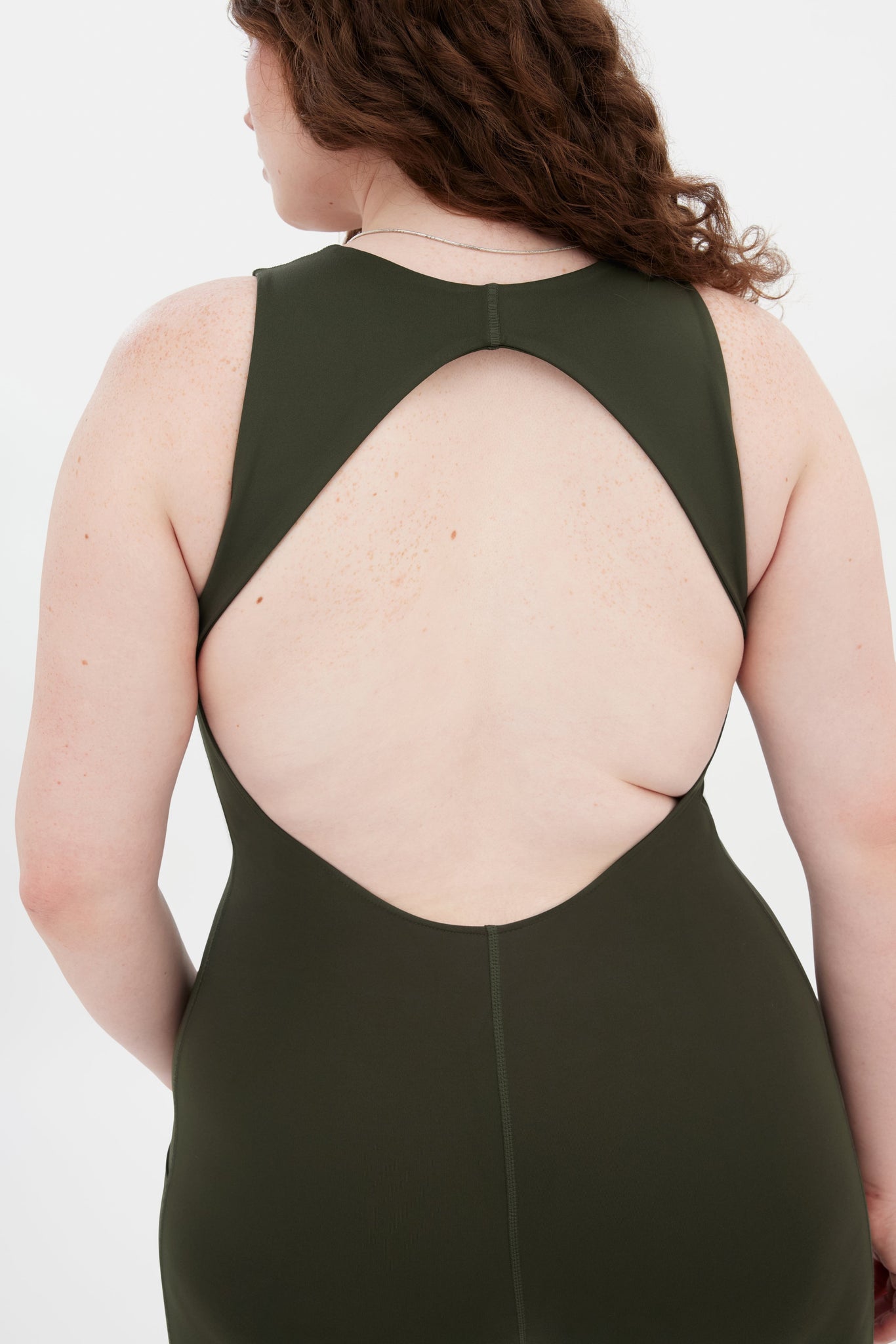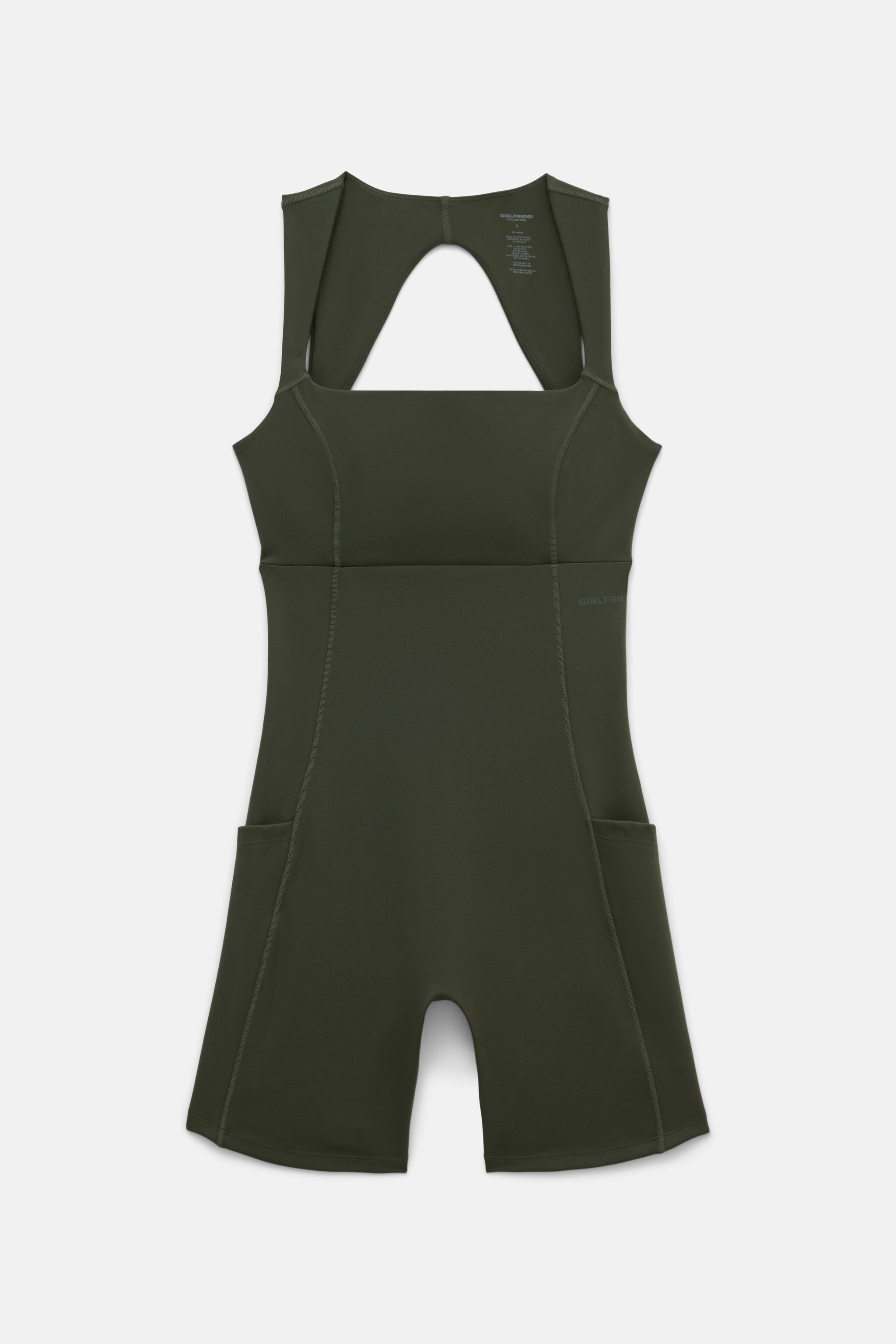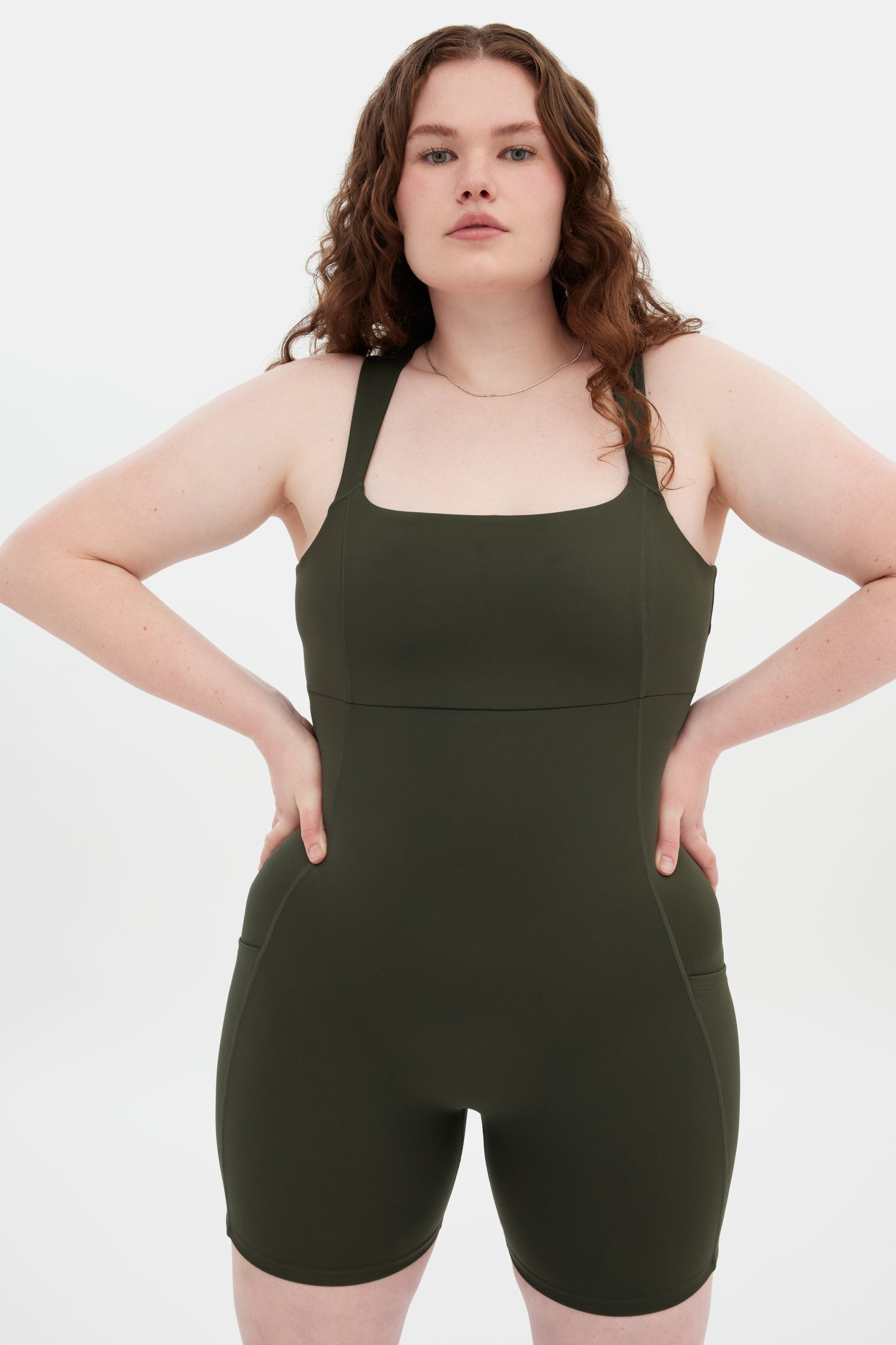An ultra-flattering active unitard with a square neckline and 6” inseam.