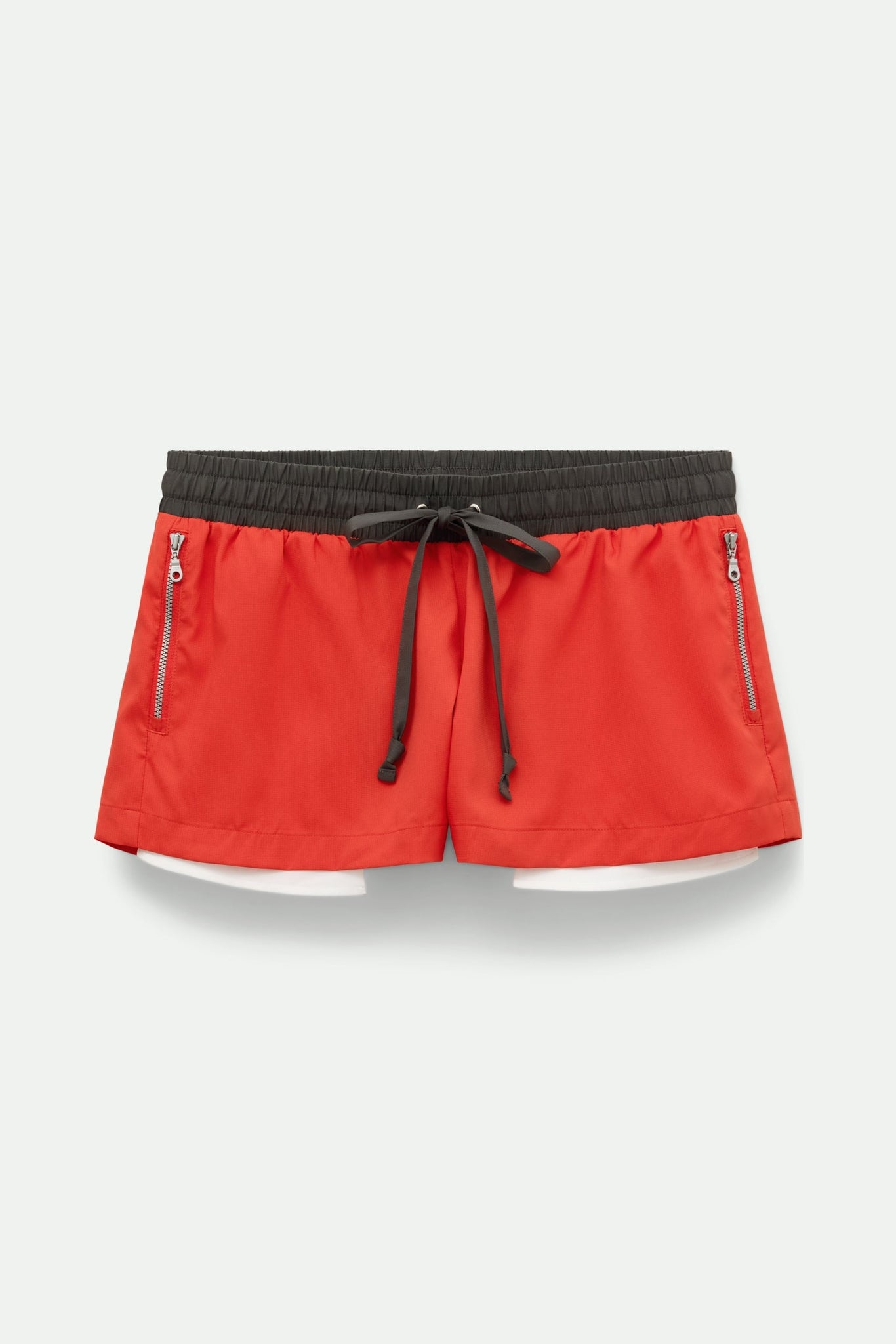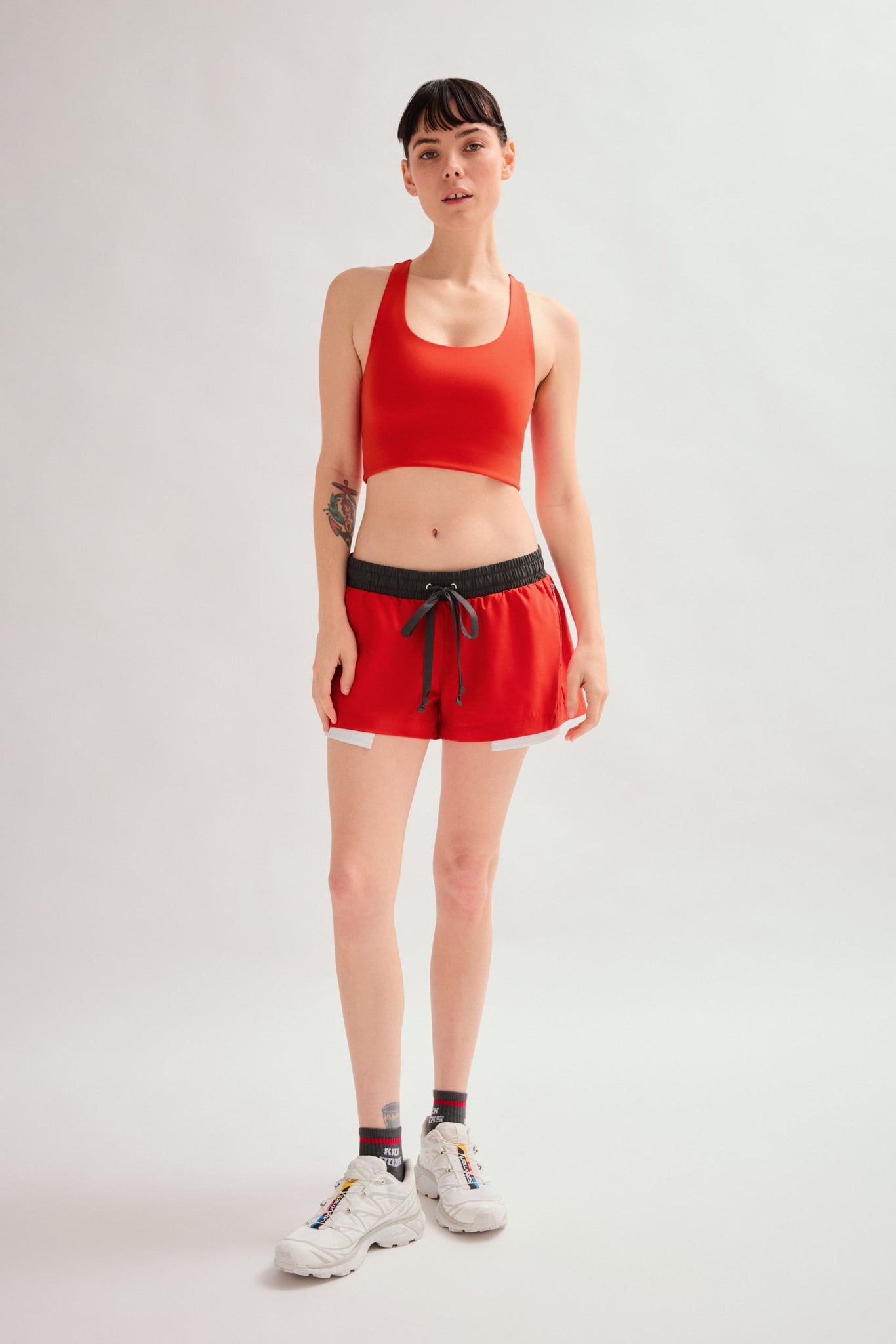 A low-rise ripstop hiking short with internal mesh underwear, contrasting pocket details, and an adjustable drawstring waistband. Now all you need is the matching jacket.