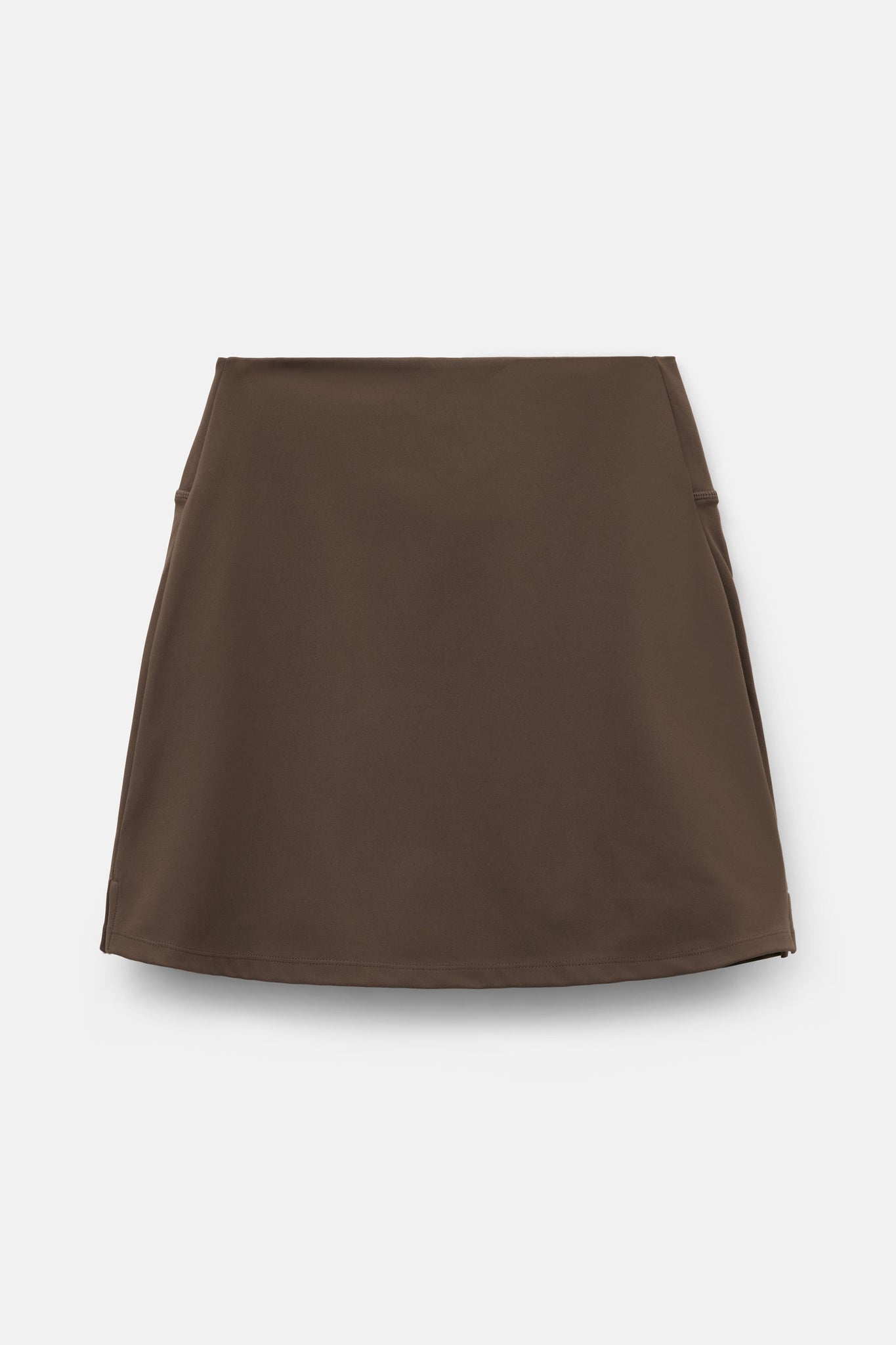 A sporty high rise exercise skirt with built-in compressive shorts, hidden mesh pockets, and side slits for easy moving.