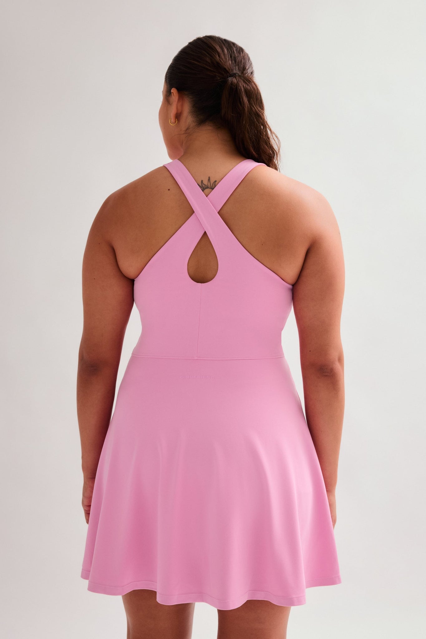 This dress is super comfortable and has a very flattering fit. I like that the straps cross in the back as it makes it easier to get on then some of the other exercise dresses.