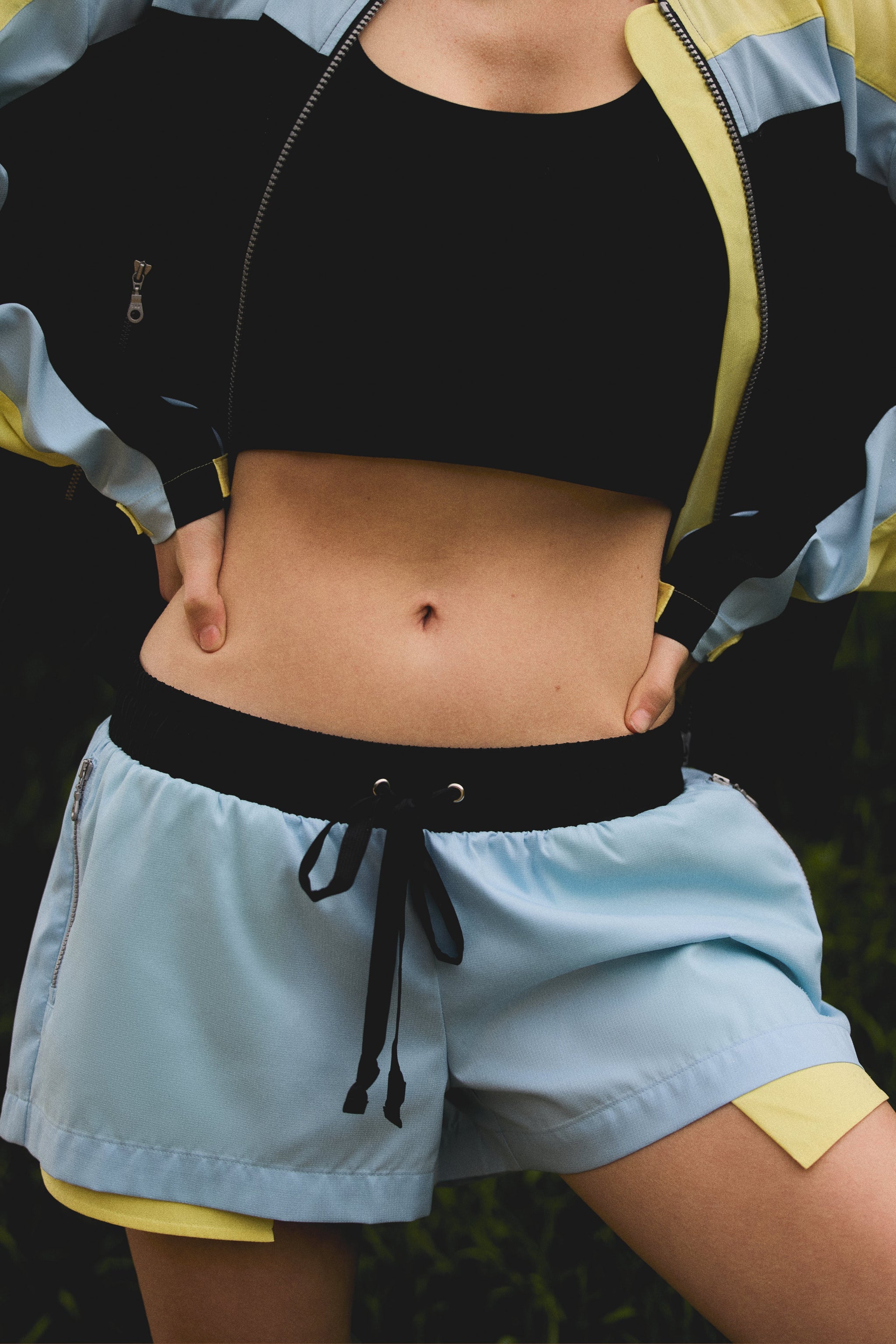 A low-rise ripstop hiking short with internal mesh underwear, contrasting pocket details, and an adjustable drawstring waistband. Now all you need is the matching jacket.