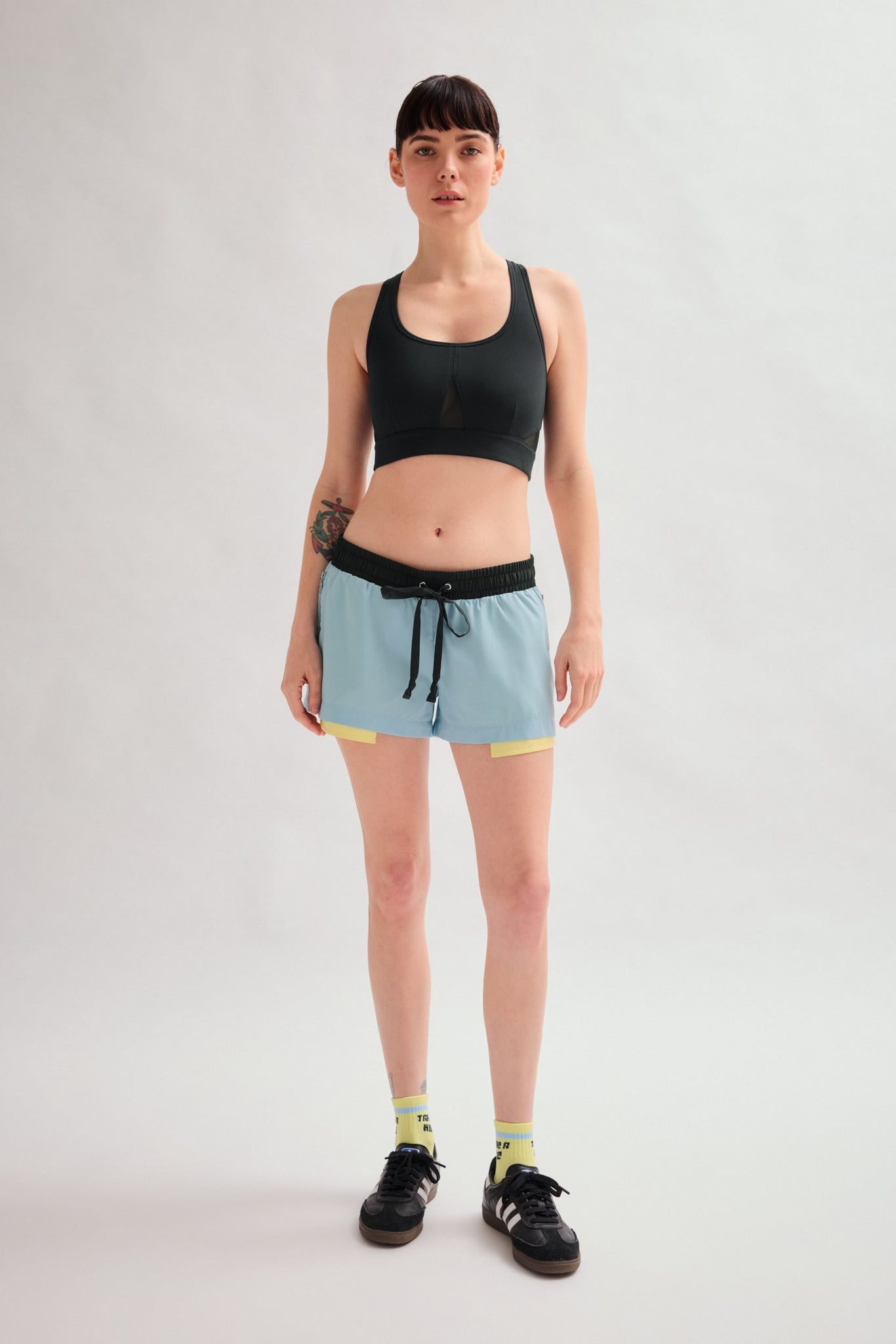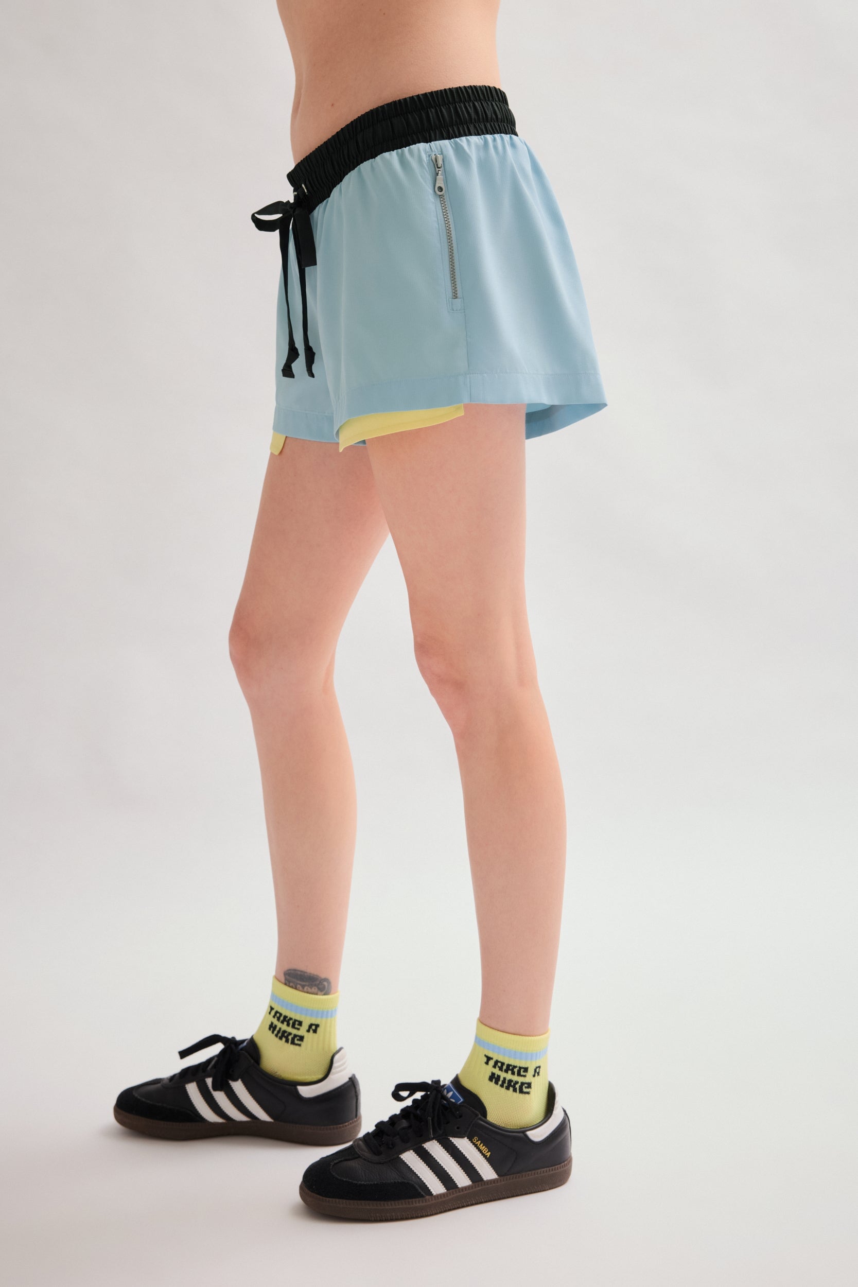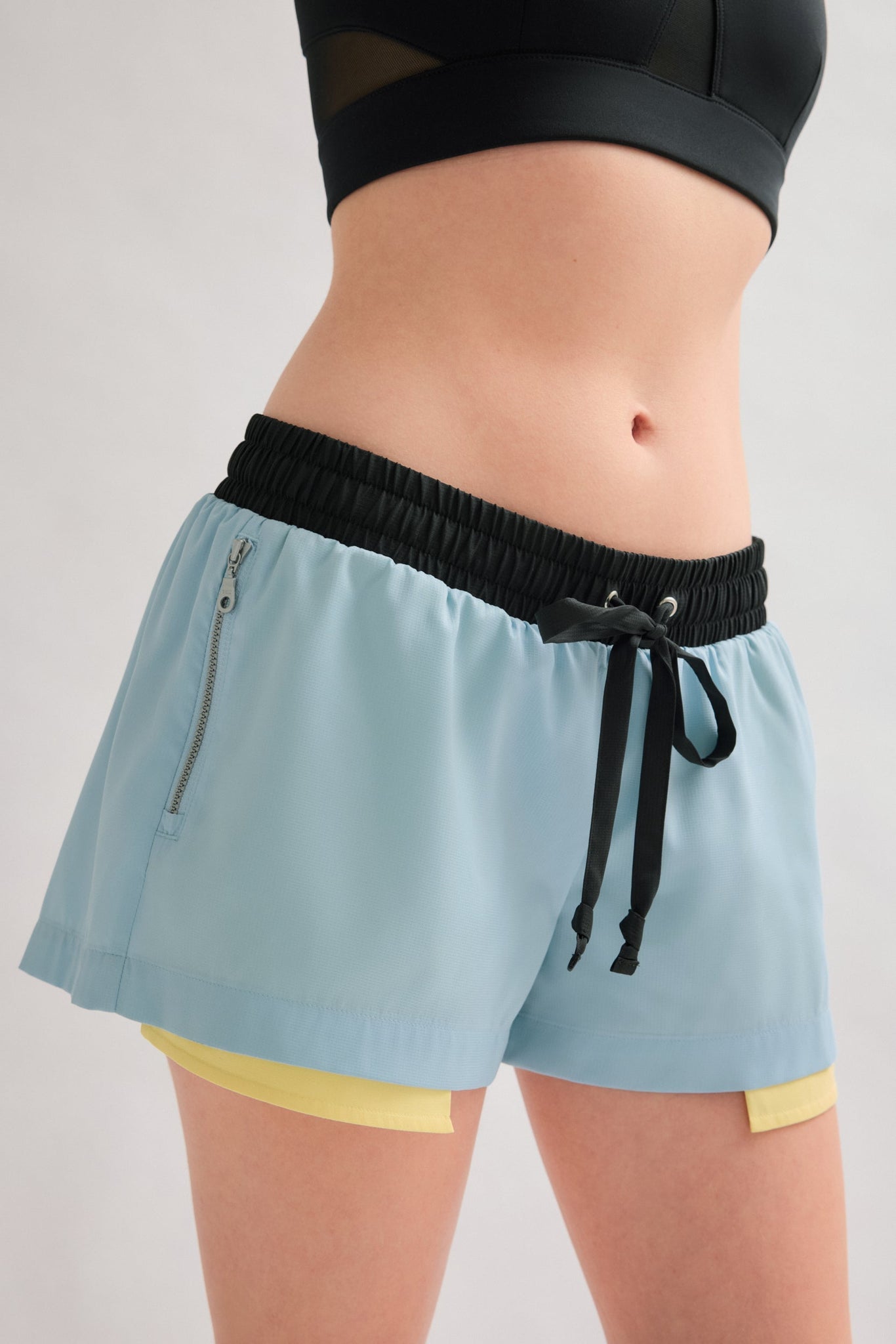 - Contrast low rise shorts with internal mesh underwear