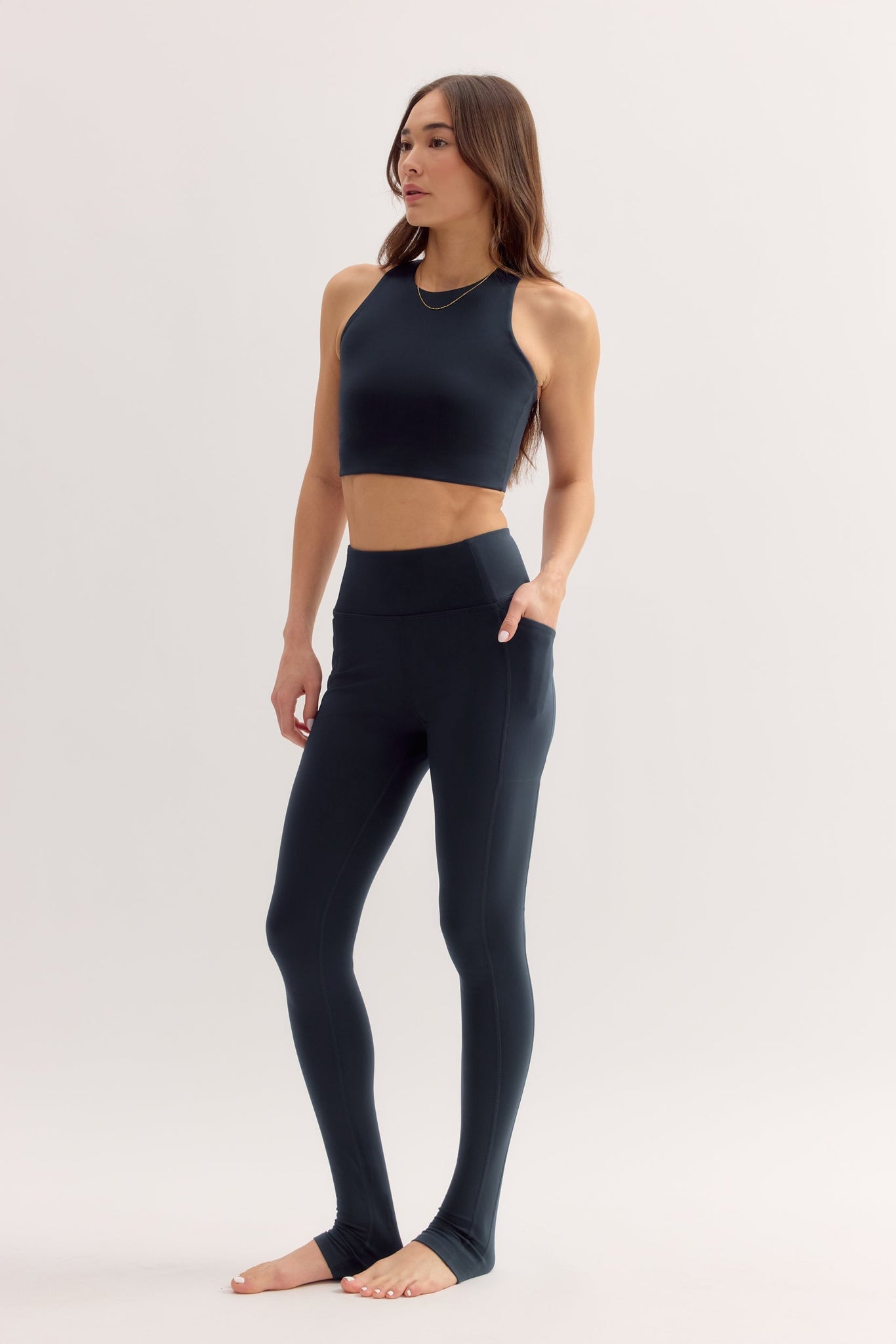 Compressive, squat-proof, ultra-high rise leggings with dual side pockets.