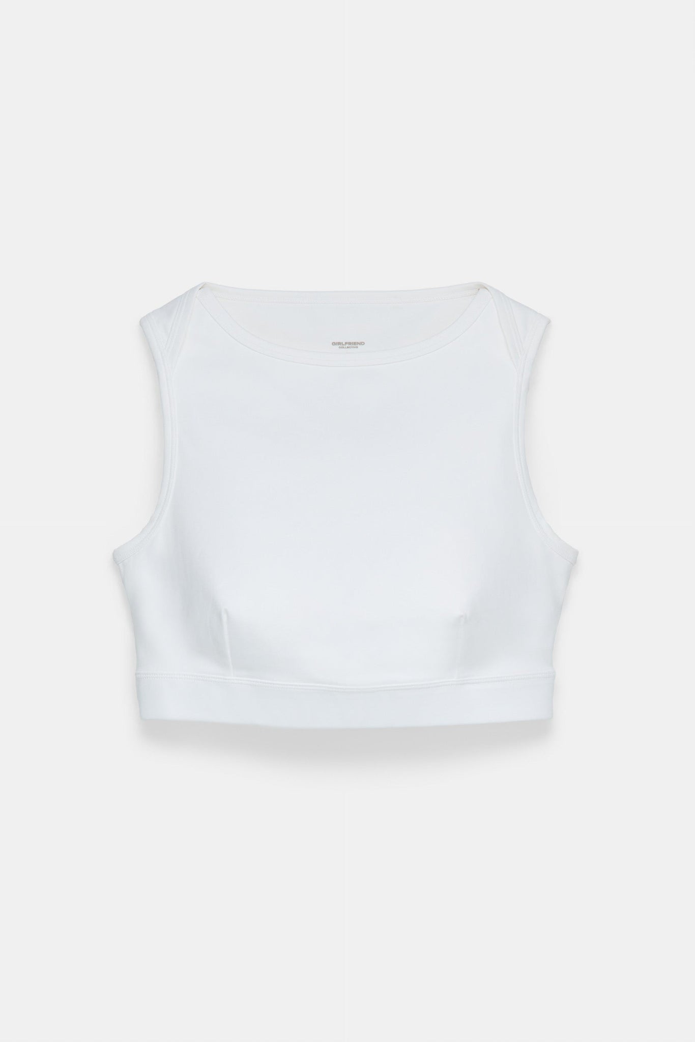 Everything runs smoother in this bra. A gently compressive boat neck to keep you supported and in place. Plus, bust darts, removable cups, and an overlapping panel detail—because they’re just Nice.